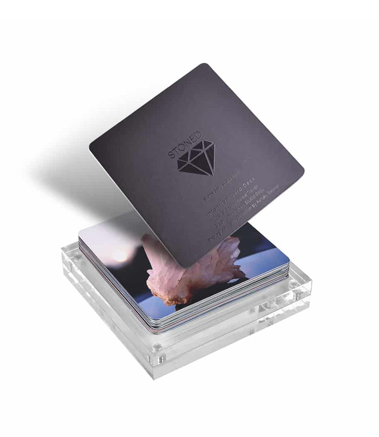 This luxe Intention Card Deck is made from silver-edged thick cards and comes complete with a clear acrylic magnetic frame. Shuffle the deck and choose a card; they act as beautiful reminders for us to keep our thoughts and actions in line with our intentions. Pop the card inside the frame and place it by your Crystals to set a positive message for your day, or simply style them in the home and workspace as beautiful artwork.