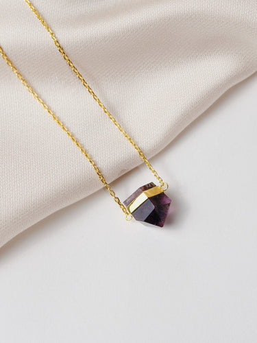Yellow Gold Amethyst Rutile Neckalce Deep Purple Thin Chain