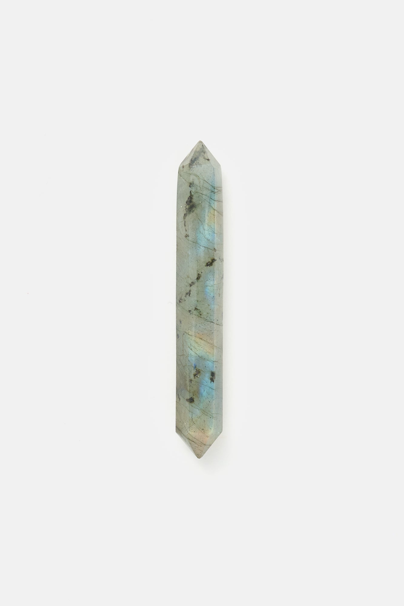 Crystal wand Important details: Peacock Labradorite is part of the Feldspar Mineral Group. It has a sheen known as labradorescence which means the crystal has a "flash" of colour only. Depending on the angle and when the crystal hits the light the wand will show flashes of colour, otherwise its body colour is a dark grey/green. Although there will always be a glint blue in your wand it could flash aqua/gold/green too. The body colour is darker green in comparison to the Purple Labradorite wand which mostly flashes purple/gold/aqua.