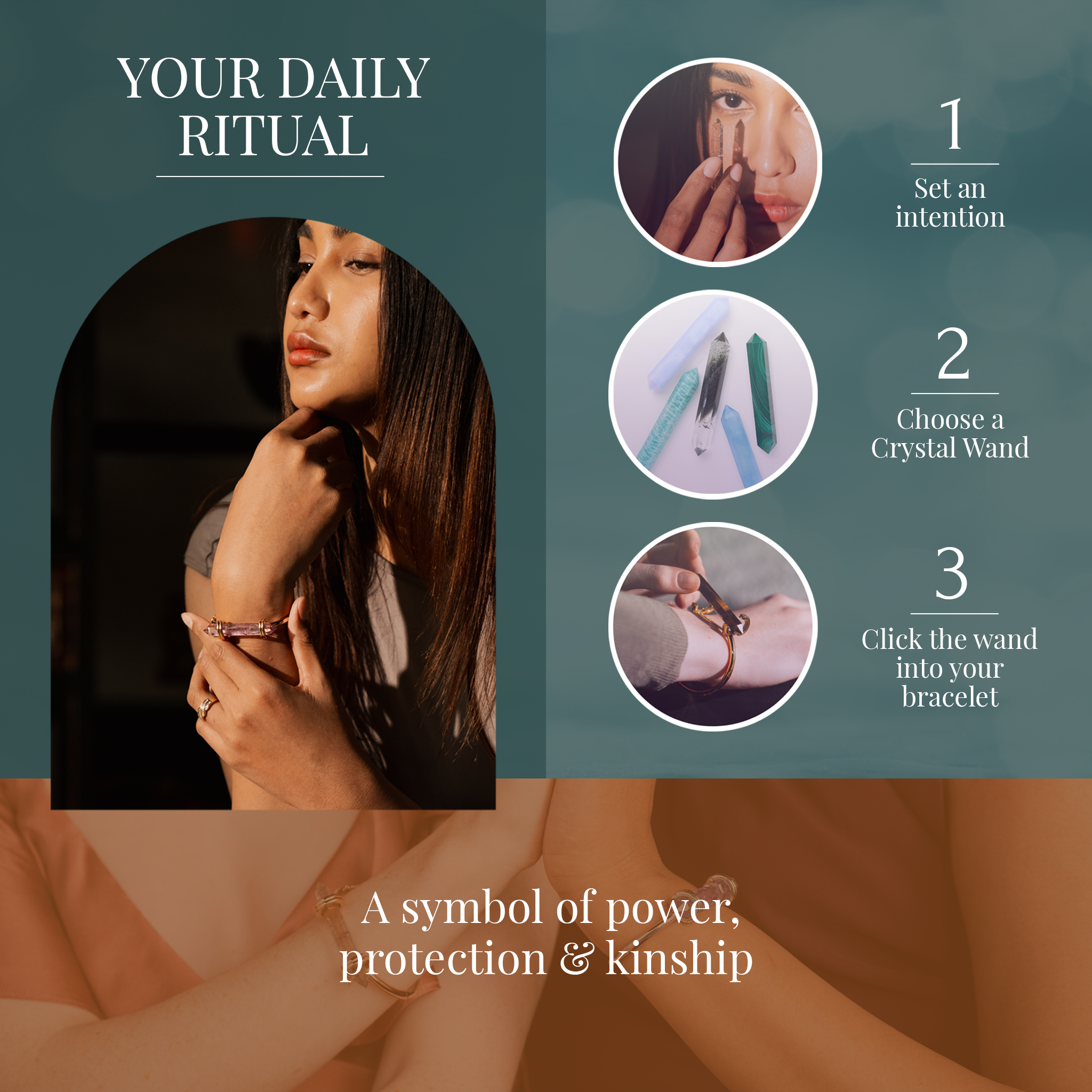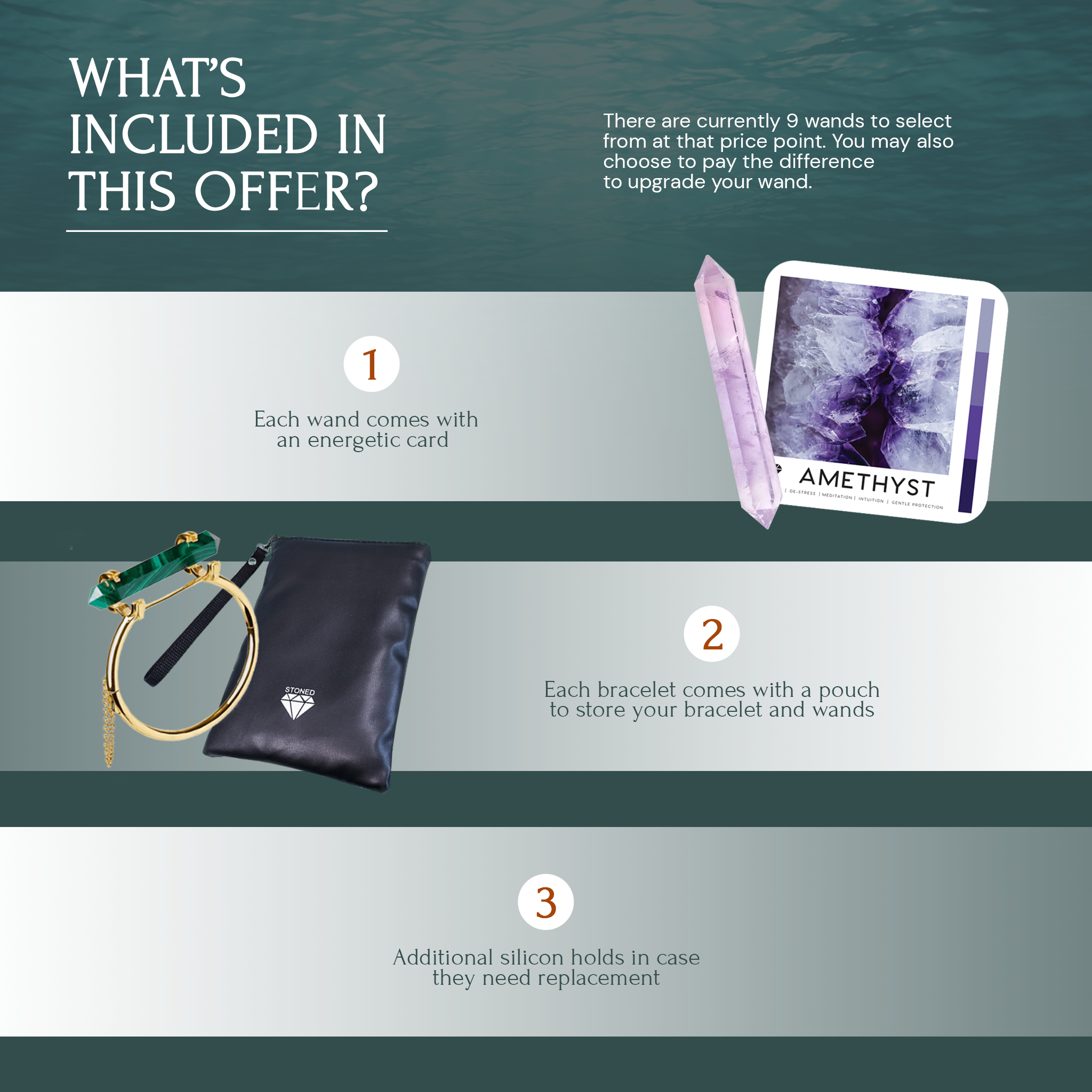 With a selection of 25 crystal wands, you can personalize your bracelet to resonate with the specific energy you seek. Whether you need protection, self-assurance, creativity, or harmony, choose the energy you want to embody.